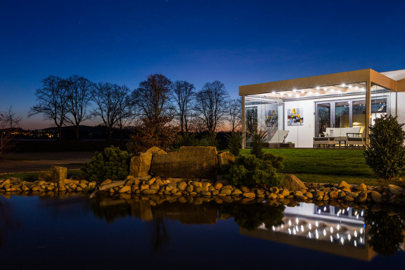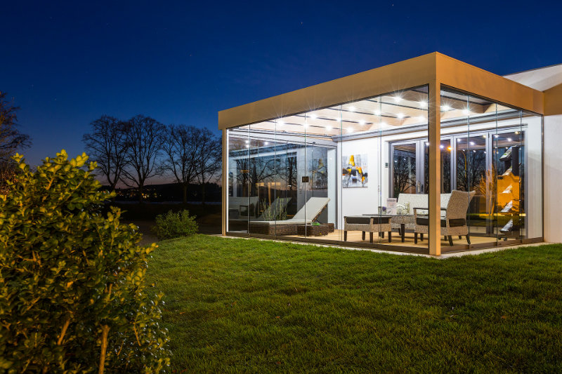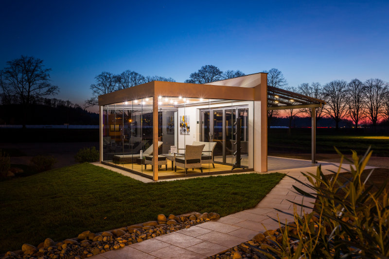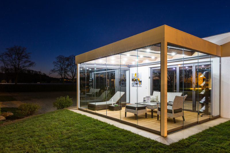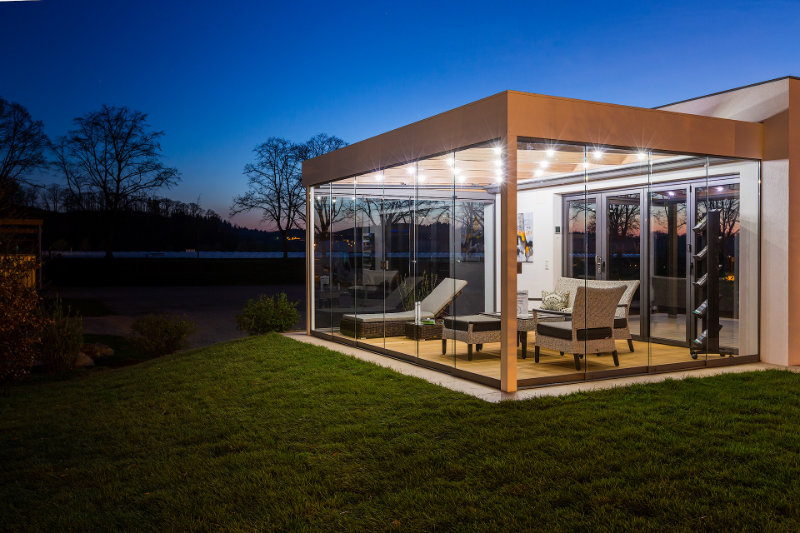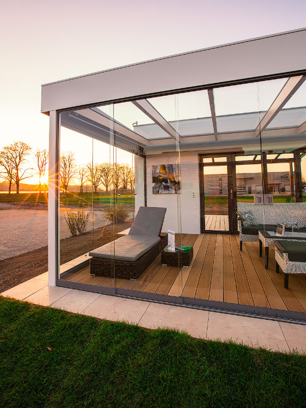filligrane Baubuche, Ganzglas Schiebe- und Faltwände